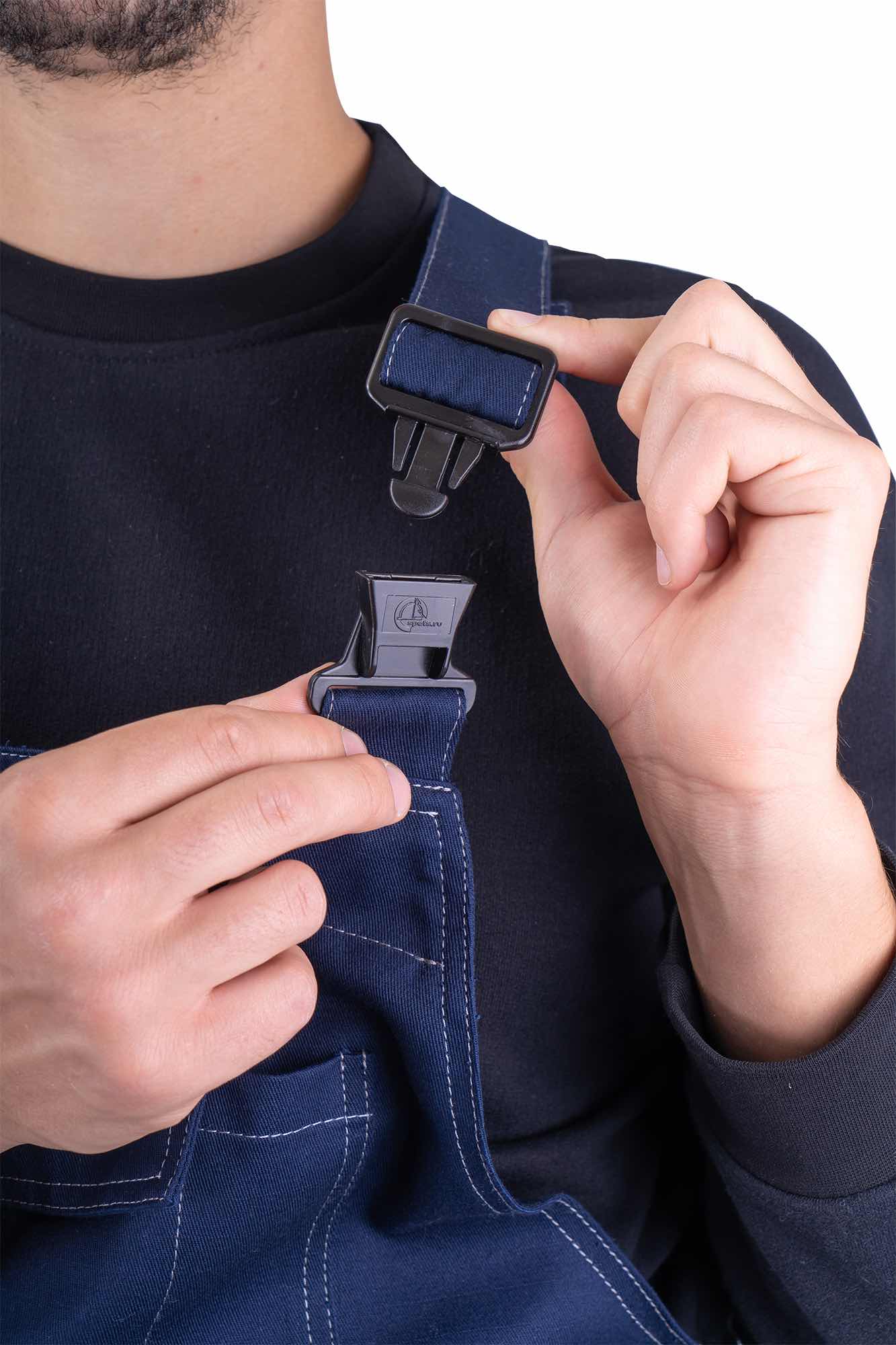 Для усиления наиболее уязвимых зон используются накладки из ткани Премьер Protect 170A, полностью состоящей из полиэстера с антистатической нитью и защитной отделкой НМВО.