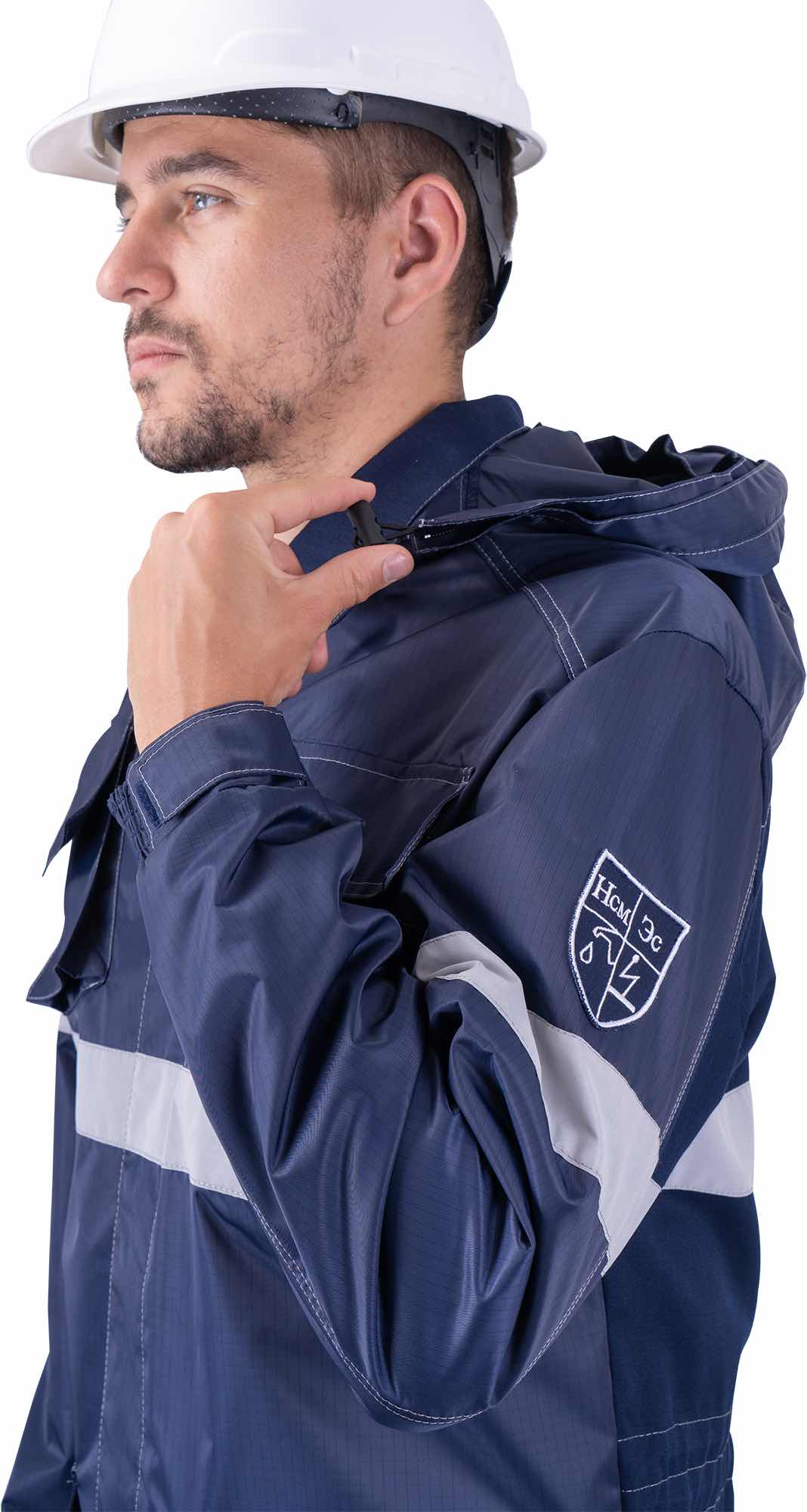 Антистатические свойства: ткань с токопроводящей нитью предотвращает накопление статического заряда (Эс), что особенно важно при работе на объектах нефтегазовой отрасли.