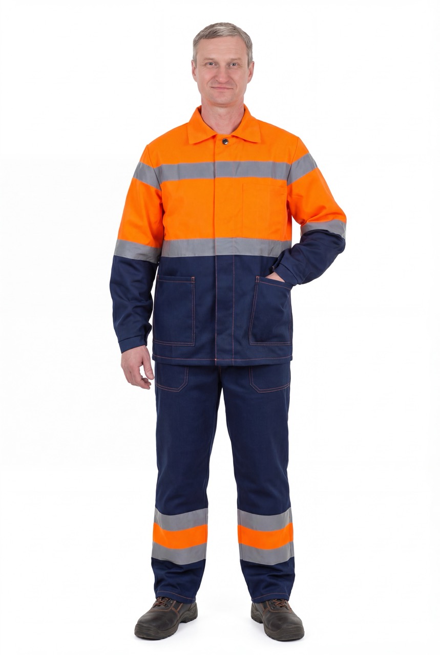 Сигнальный костюм дорожника 1–2 класса повышенной видимости — это специализированная рабочая одежда для безопасного выполнения работ вблизи транспортных потоков и в условиях недостаточной освещённости. Костюм обеспечивает визуальное обнаружение работника днём и ночью в свете фар, а также защищает от производственных загрязнений и механического износа.