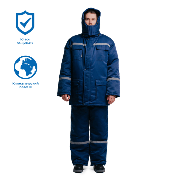 Костюм Айон-2 — это тёплый и функциональный комплект спецодежды для работы в зимний период. Модель относится ко 2 классу защиты и предназначена для эксплуатации в условиях III климатического пояса, обеспечивая надёжную защиту от пониженных температур, общепроизводственных загрязнений и механических воздействий.
