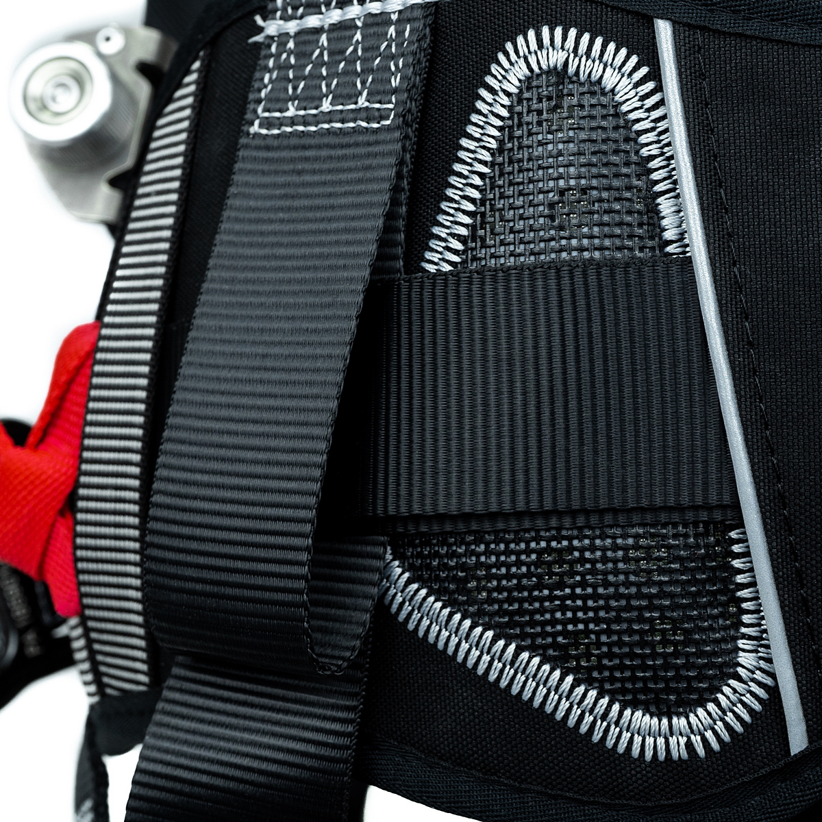 - две точки крепления страховочной подсистемы: D-образные кольца на груди и на спине;